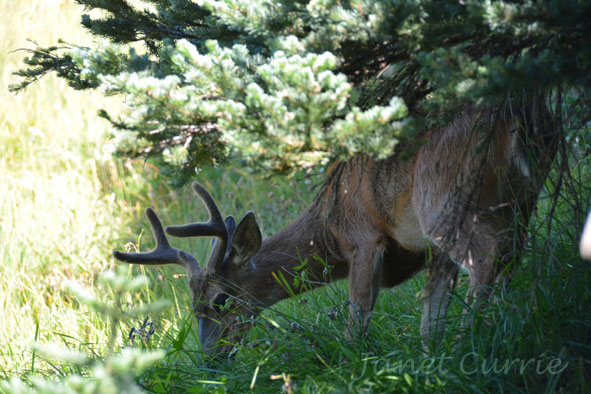 | Black-tailed deer, I think. He was only about 5 meters away, but I couldn't go off trail for a better shot. |